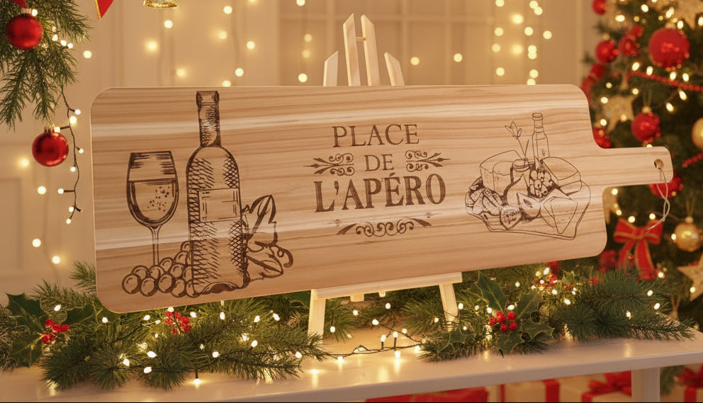 🌿 Fabrication artisanale, bois durable, finitions soignées. Une pièce unique qui transforme chaque apéro en banquet.
