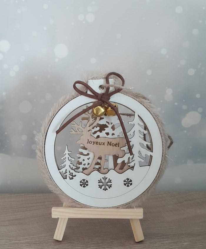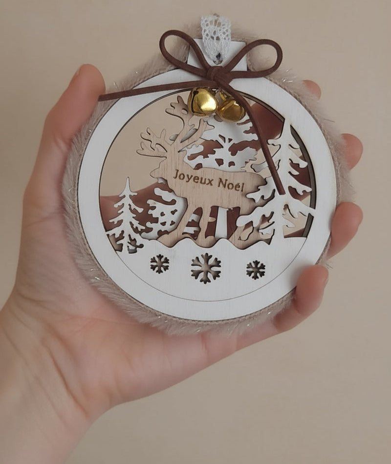 Cette boule en bois de 10 cm, gravée avec élégance dans notre atelier, célèbre l’esprit de Noël avec délicatesse.